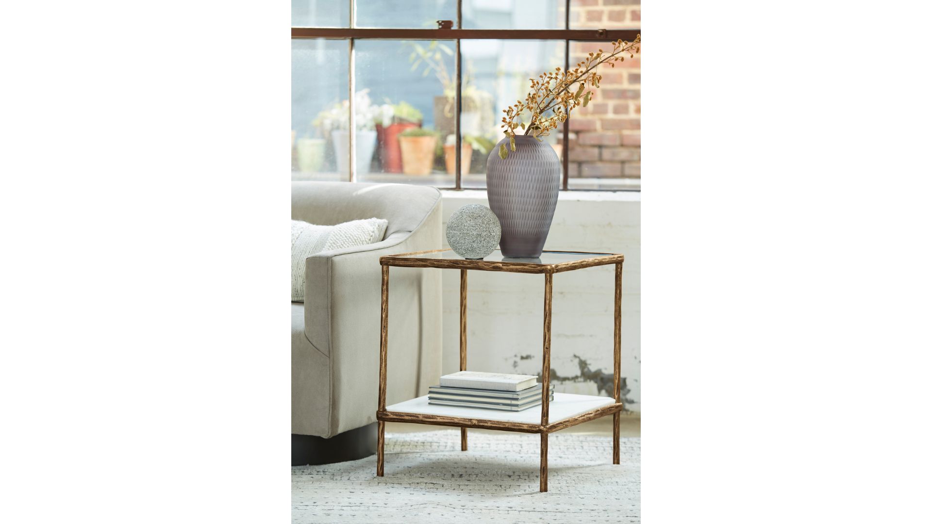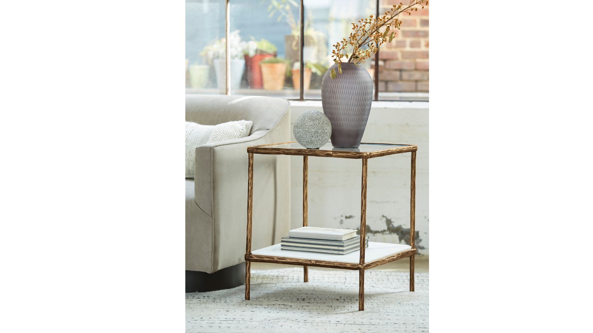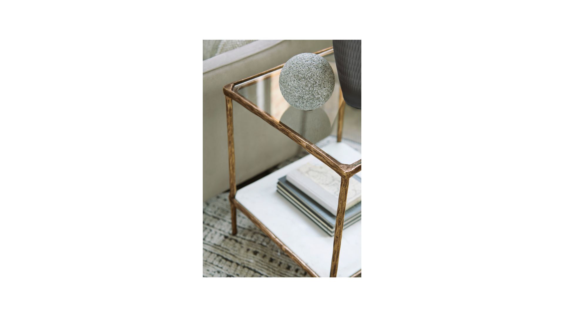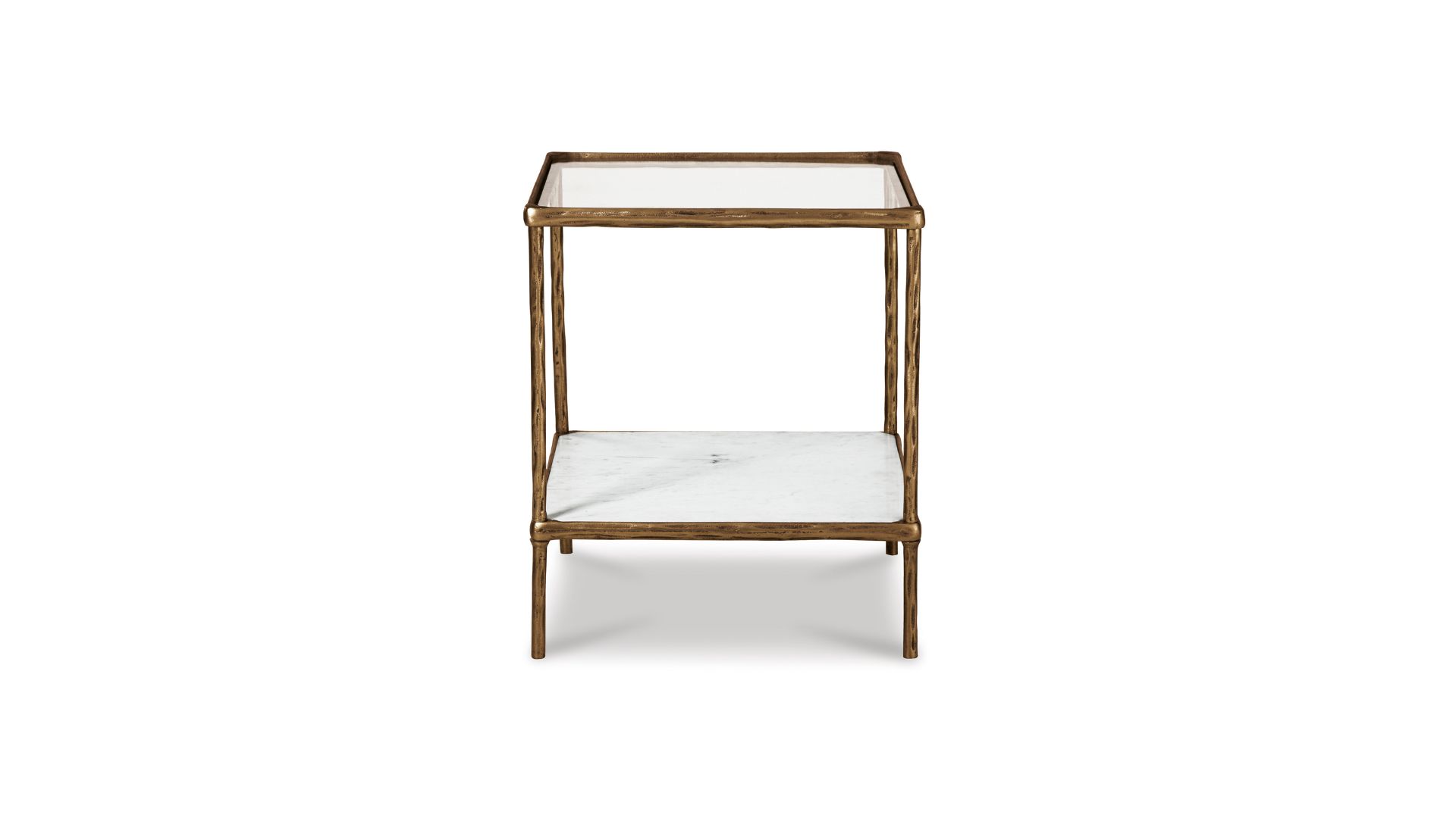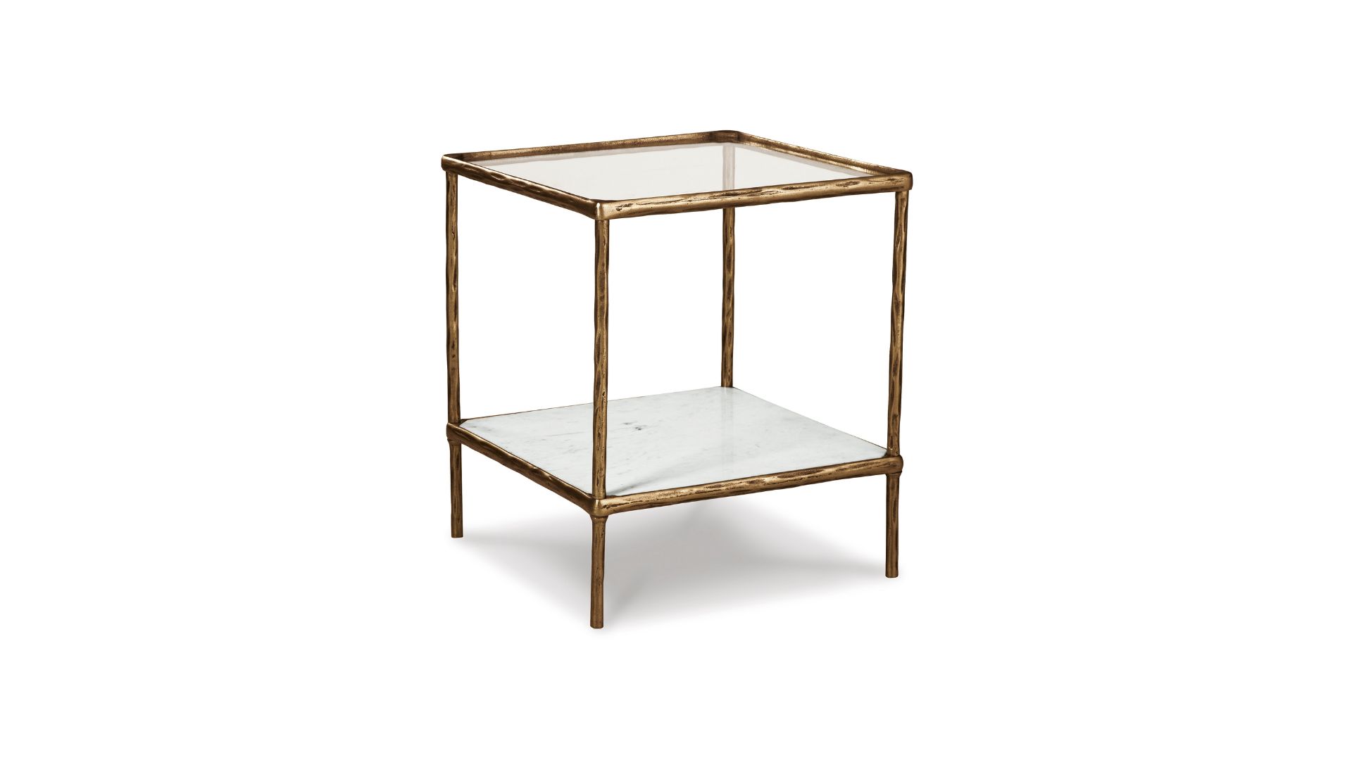 Classic in design with a dash of textural appeal, the Ryandale accent table provides both flair and function. The glass tabletop offers the perfect perch for a lamp, while the white marble lower shelf is ideal for resting trendy coffee table books and other decorative pieces. An antiqued brass-tone finish on the frame has a rustically luxe look that remains versatile, suiting spaces from casual to contemporary.