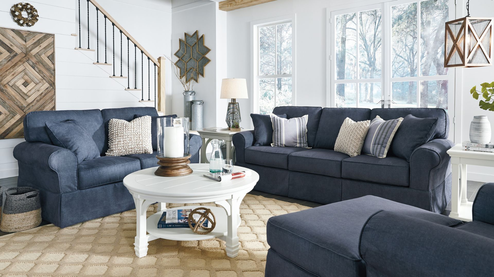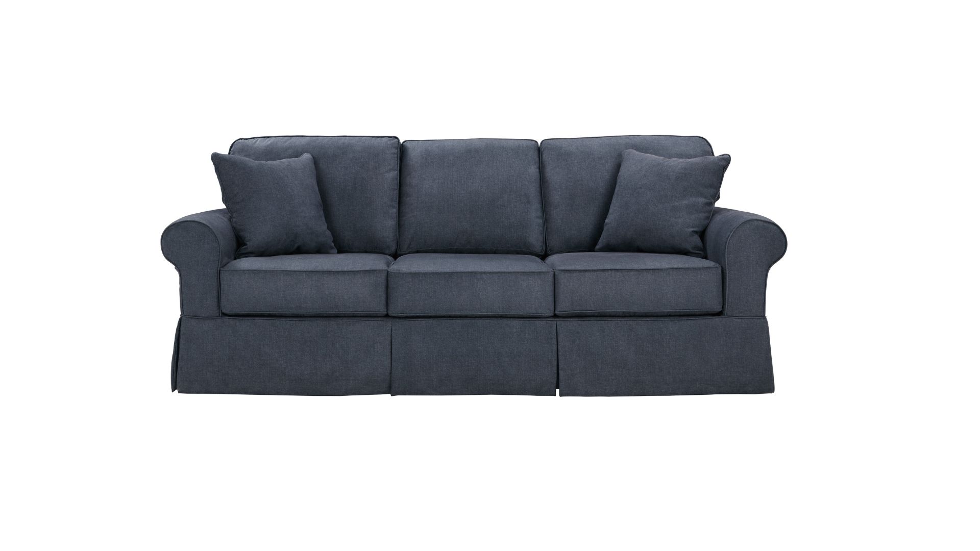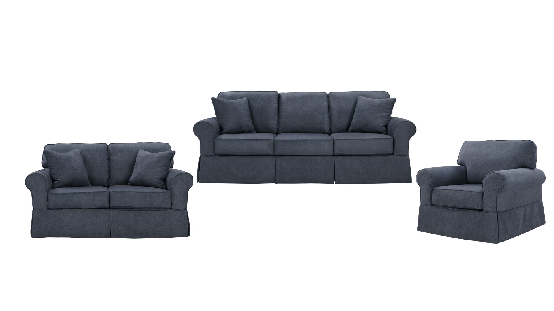 Whether your aesthetic is easy elegant, coastal cool or quaint cottage, the Alano sofa set in denim blue is so befitting. Reversible cushions are a simply practical touch, while a feel-good fabric melds a low-cut velvet with linen weave texture to enhance the experience. Pair of plump pillows up the comfort.
