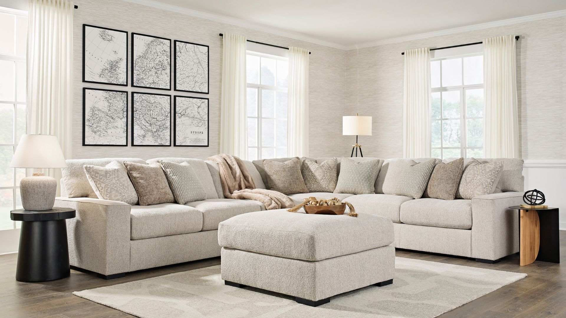 Reminiscent of a fine, subtly patterned herringbone jacket, this casually elegant sectional offers contemporary style in spades. A distinctive curved shape provides plenty of leg room, while soft feather-blend cushions maximize relaxation. Why skimp on comfort and style? With this sectional, you have space to lounge solo or hang out with friends and family.