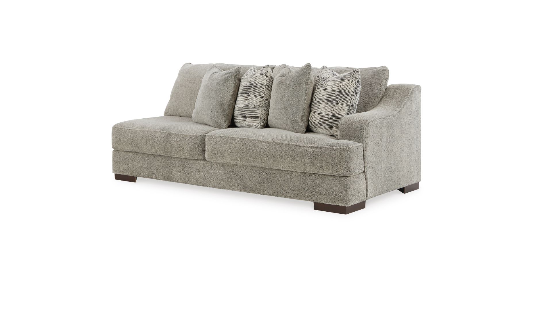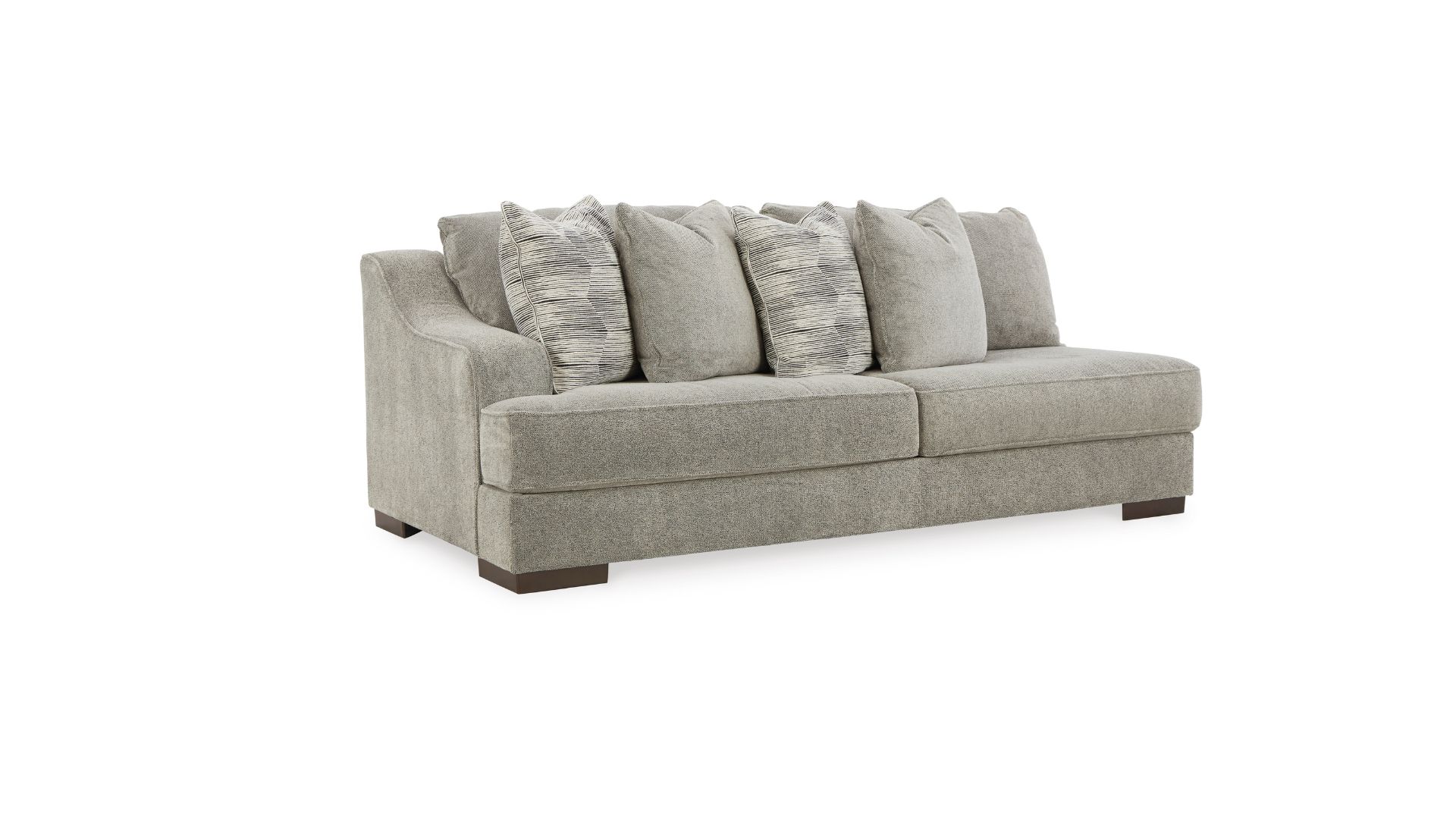 Get a head start on relaxation with the Bayless sectional. Draped in luxuriously soft smoke gray fabric, it invites you to unwind in style. Designed for versatility, this modern sectional makes the perfect centerpiece for spontaneous gatherings.