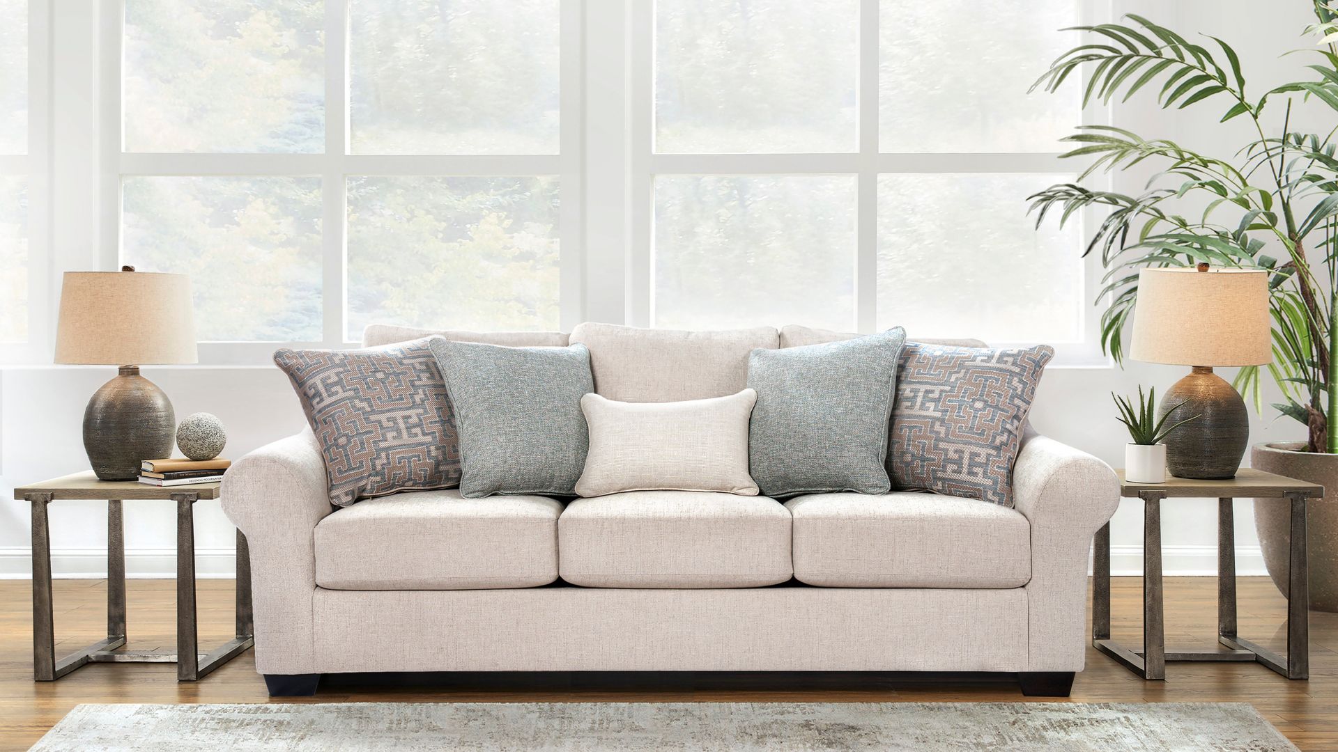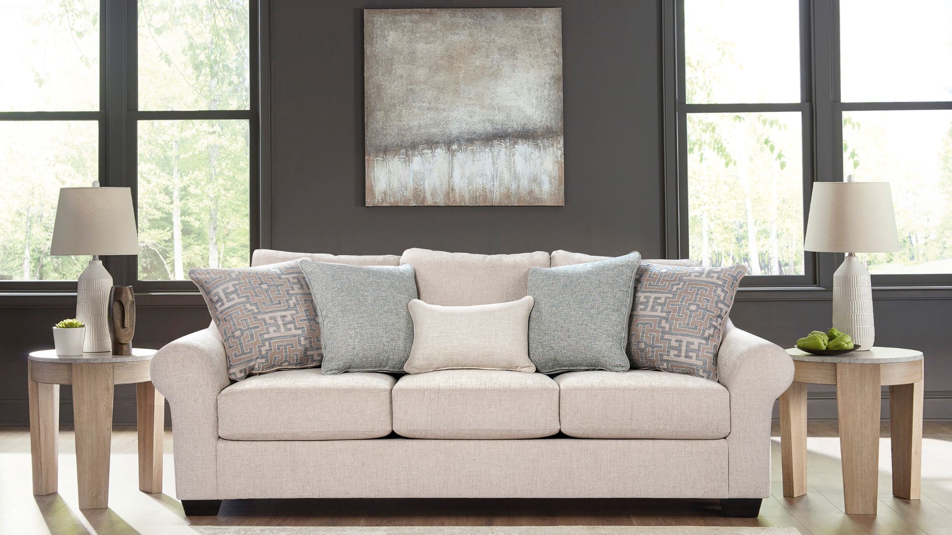 The Belread Sofa combines contemporary charm with comfortable seating. Featuring plush cushions, neutral upholstery, and sleek lines, this sofa offers a stylish yet functional addition to your living room. The deep seat and supportive armrests provide a relaxing experience, making it perfect for both lounging and entertaining guests. The Belread Sofa delivers comfort and versatility with a modern twist.