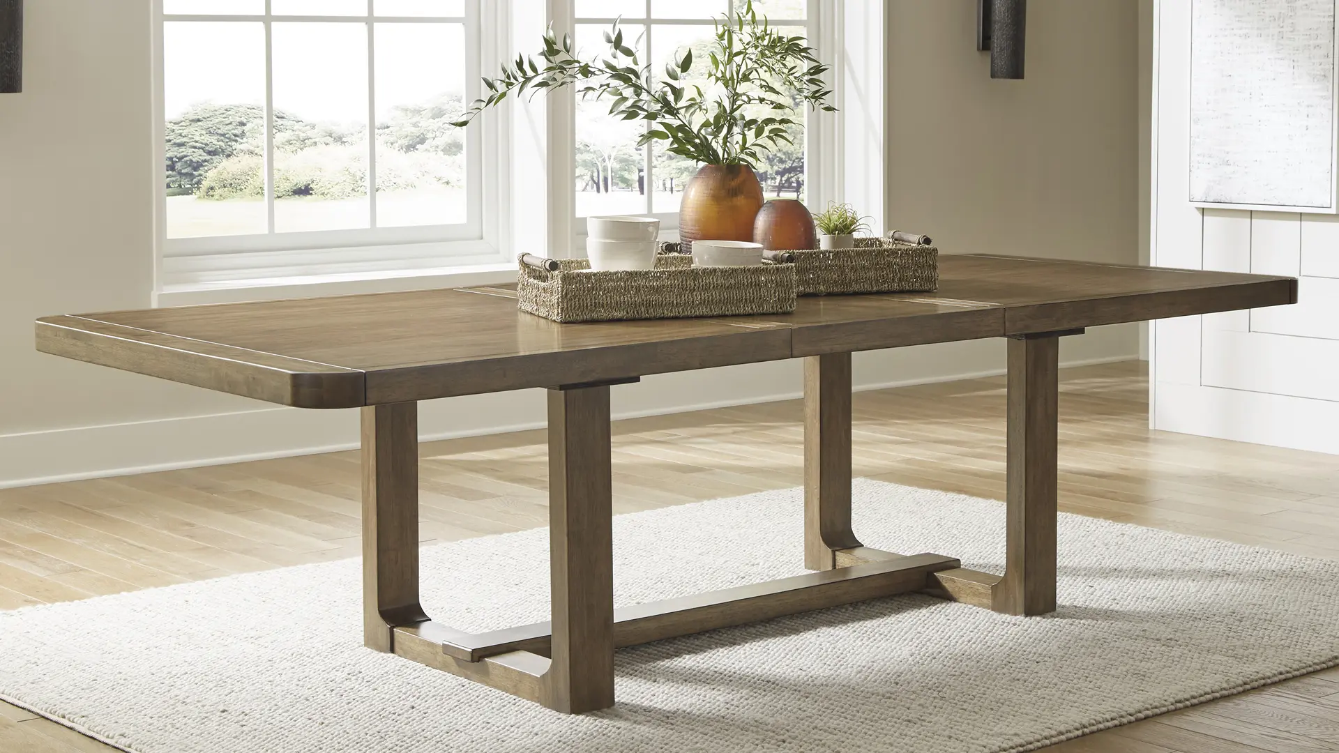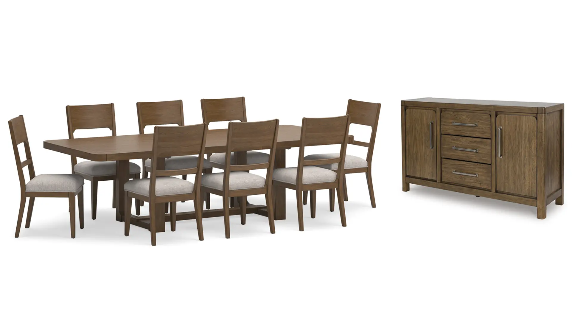 The Cabalynn dining package sits comfortably at the intersection of modern lodge and farmhouse aesthetics. Your warm and welcoming disposition is reflected in the charming architectural elements and light brown glazed finish.