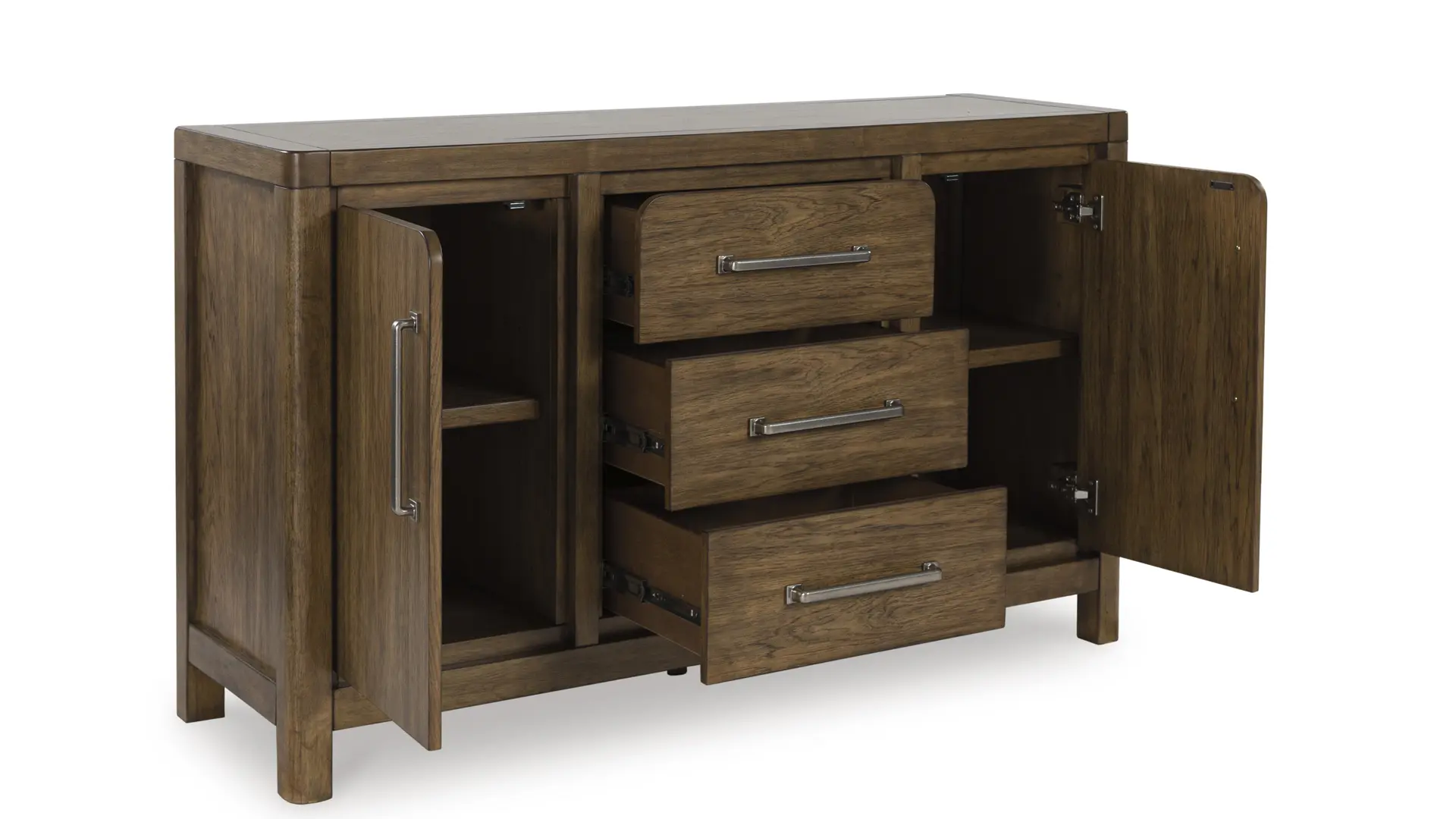 3 felt-lined drawers with fully finished interior, dovetail construction and heavy duty ball-bearing side glides