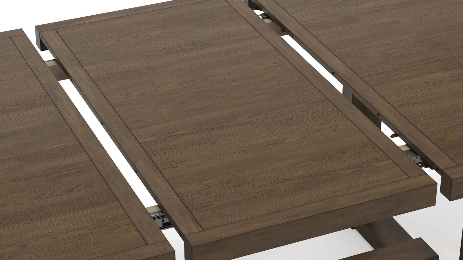 Table extends by pulling both ends and dropping in leaf