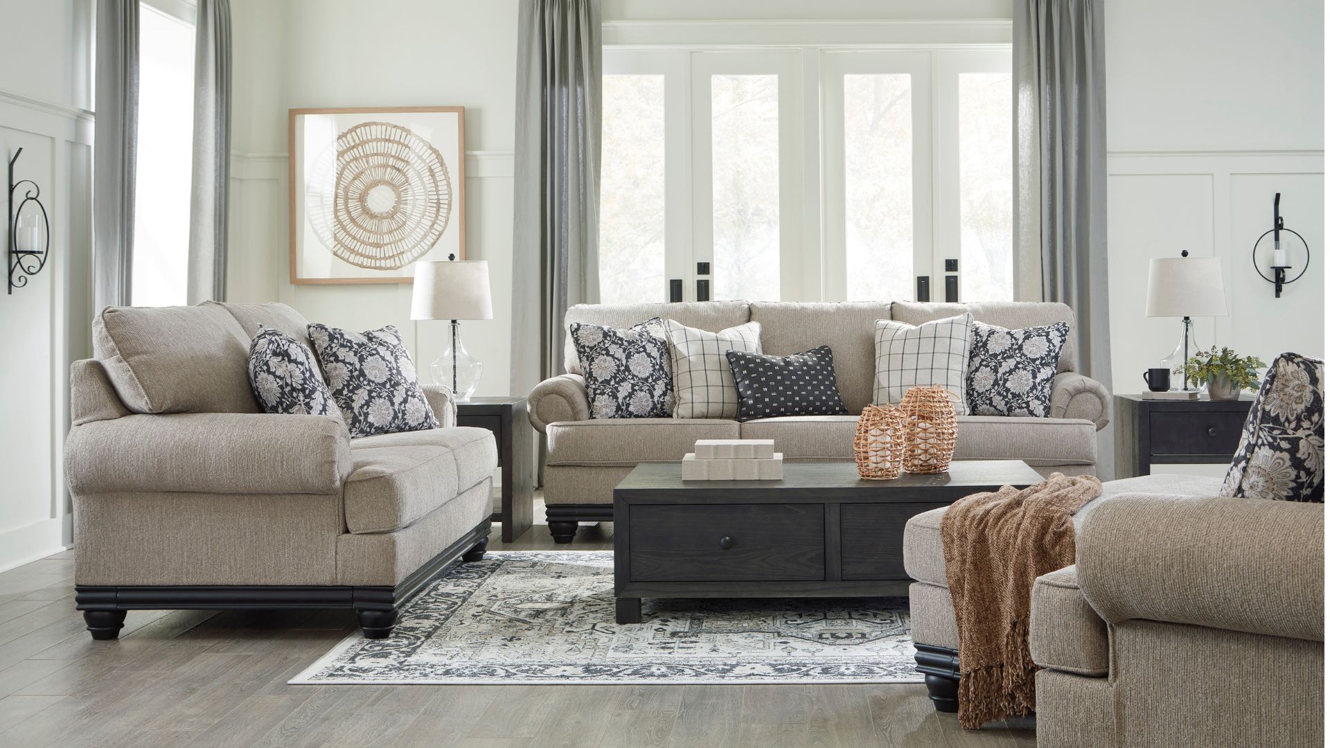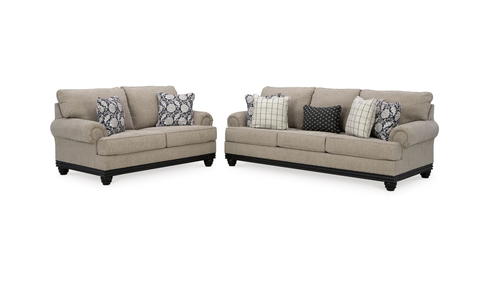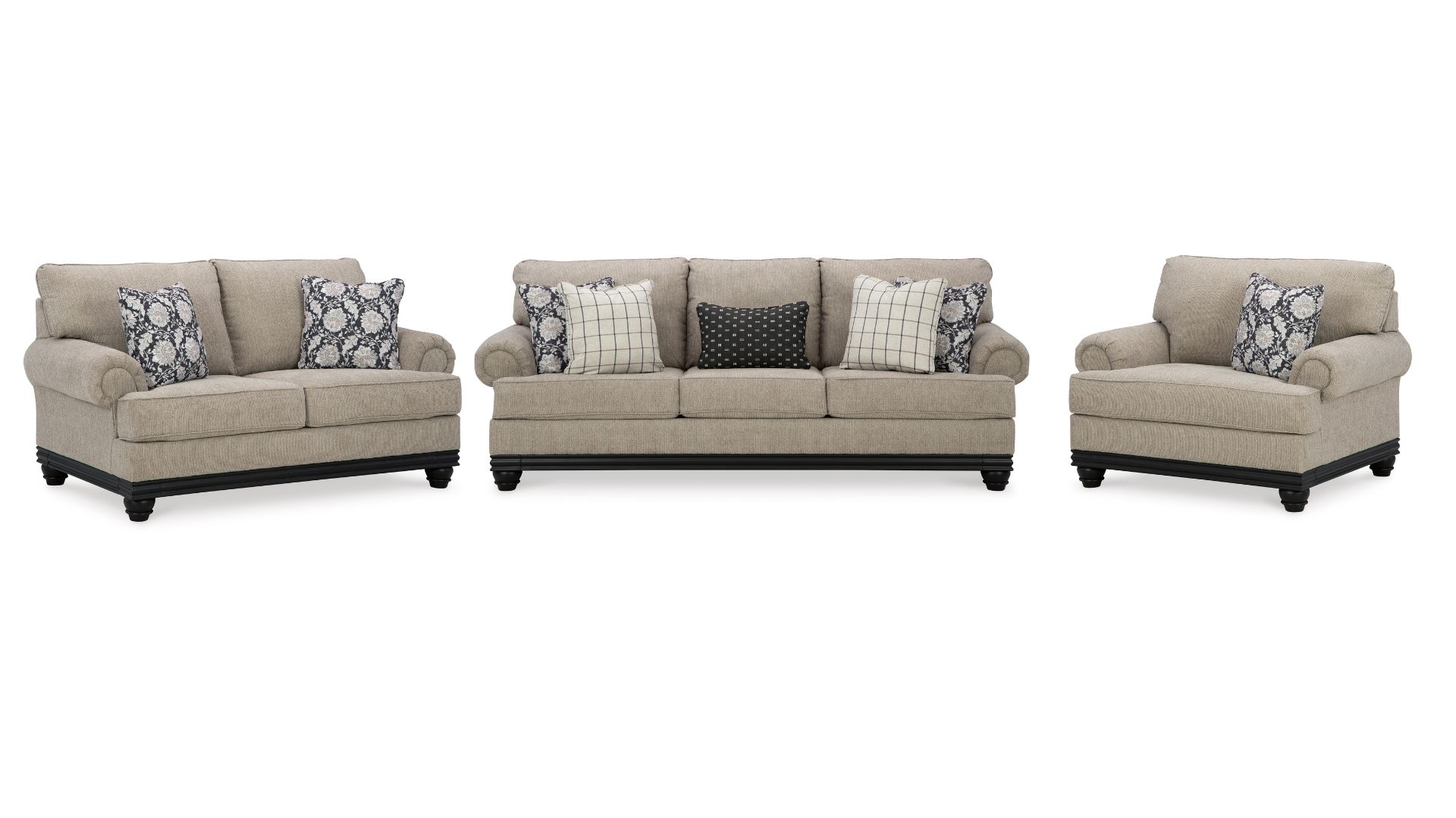 The Elbiani sofa set suits those searching for a fresh take on versatile style, seamlessly transitioning from casual to modern with your decor. Its flexible character comes courtesy of a chunky fabric. Matte black wood trim creates innovative contrast