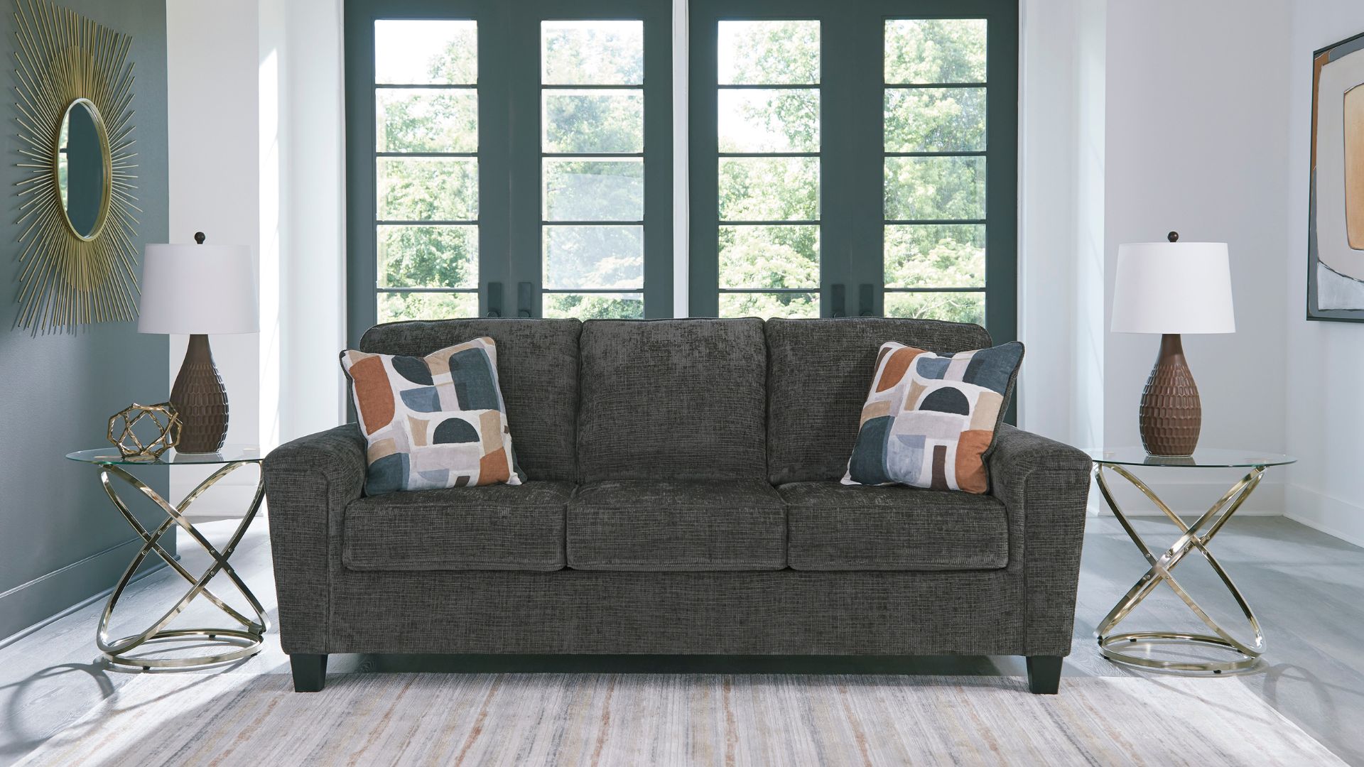 There’s something about the Erinslane sofa that’s so easy to appreciate. Maybe it’s the plush upholstery and soothing tone, eager to support your quest for total relaxation. Perhaps it’s the modern flair of its simple lines, tapered legs and abstract-patterned pillows. Whatever it is that appeals to you, this is a piece you’re going to love.