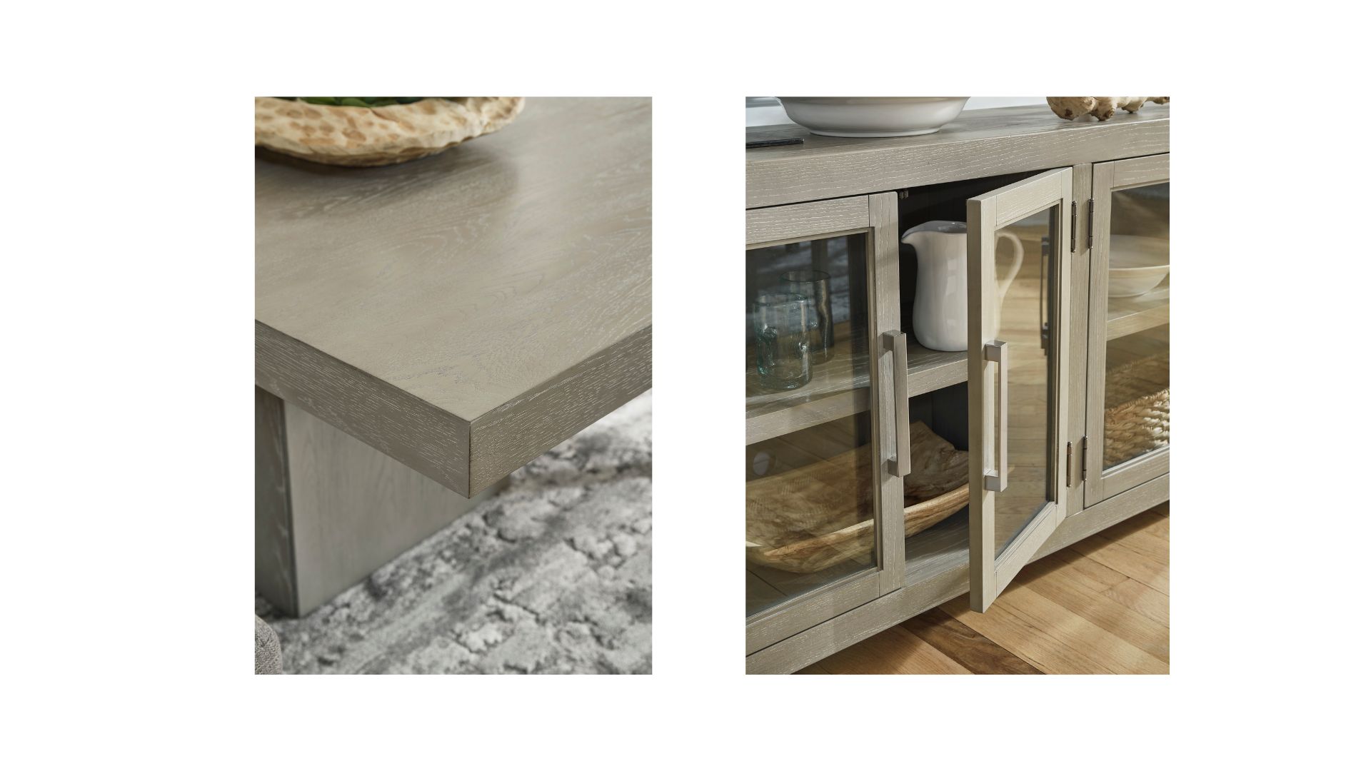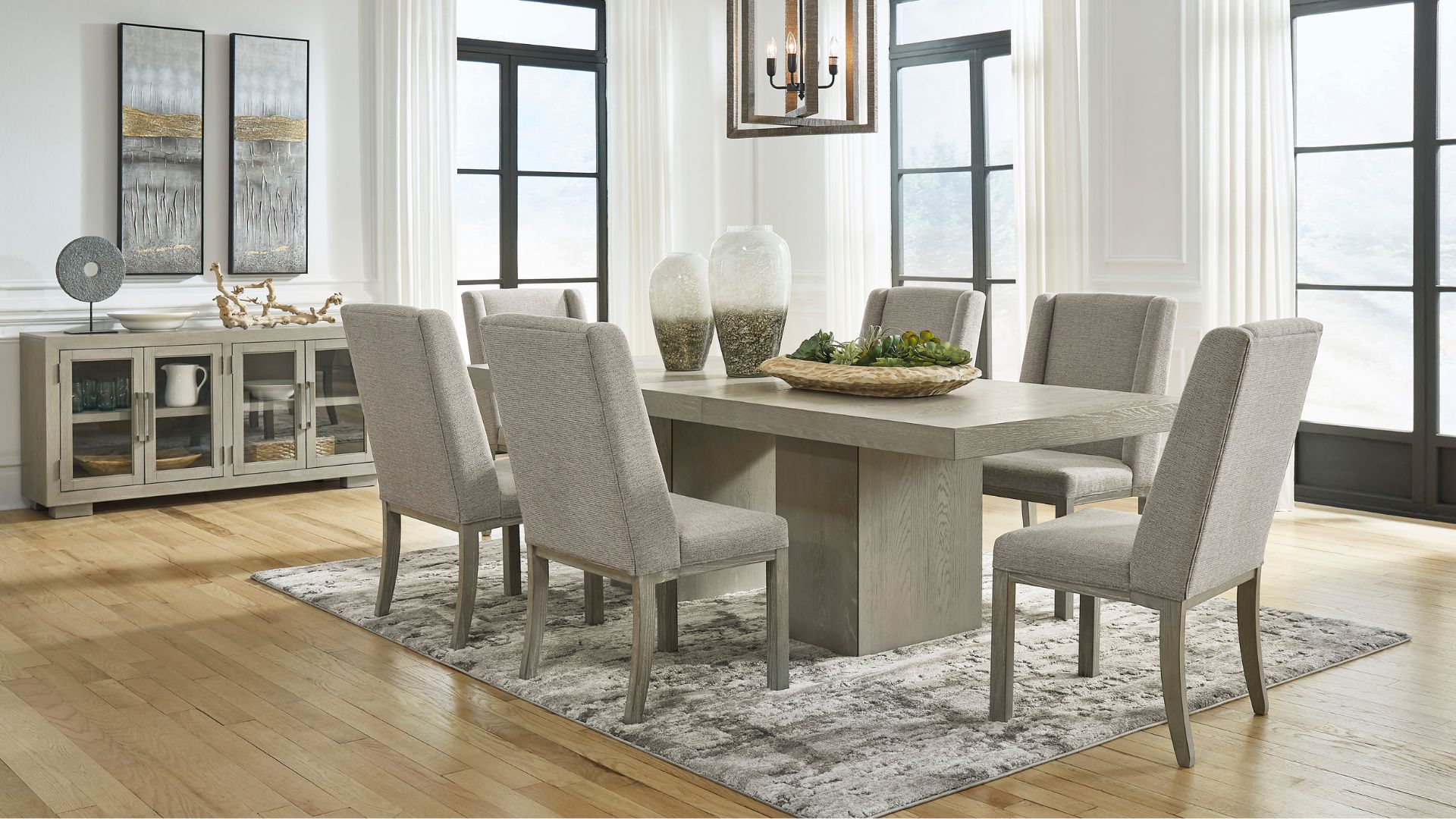 The Fawnburg dining package has a clean, contemporary design with a relaxed sensibility. Its sturdy silhouettes sport a trend-right gray taupe finish. For those inclined toward modern stylings, this set is sure to please.