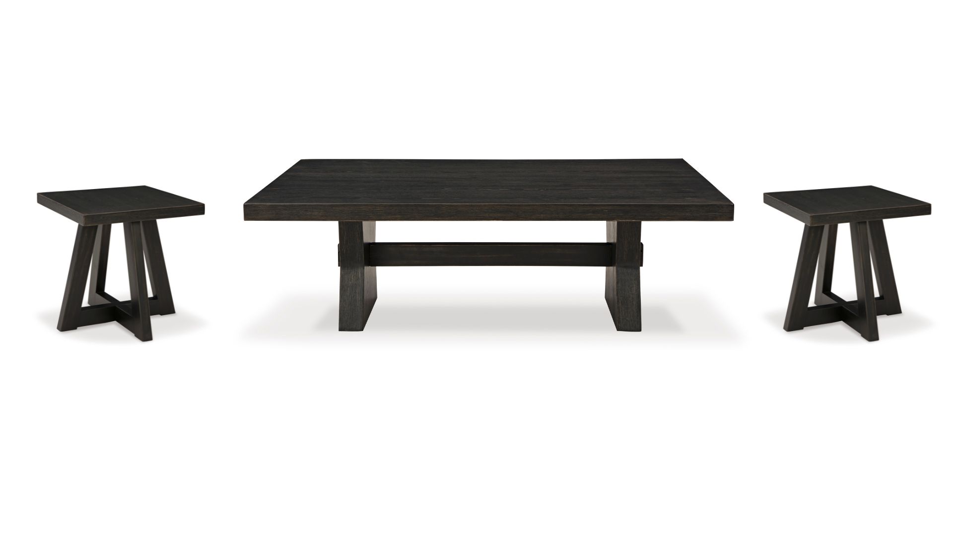 The Galliden cocktail table brings a rustic vibe to urban contemporary design. It’s a modern approach to natural beauty, with an aged black finish defining a unique geometric design. And the stunning simplicity of its color palette allows you to seamlessly coordinate this table with your existing decor.