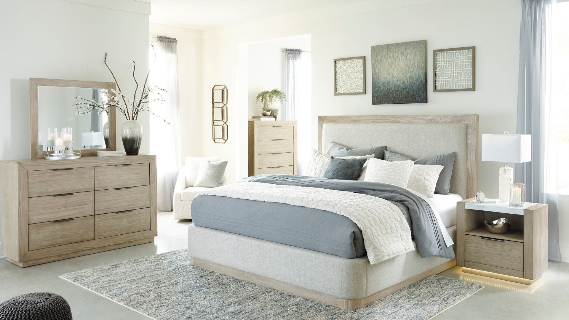 HENNINGTON BEDROOM SUITE (BED + 2 NIGHTSTANDS + MIRRORED DRESSER + CHEST OF DRAWERS)