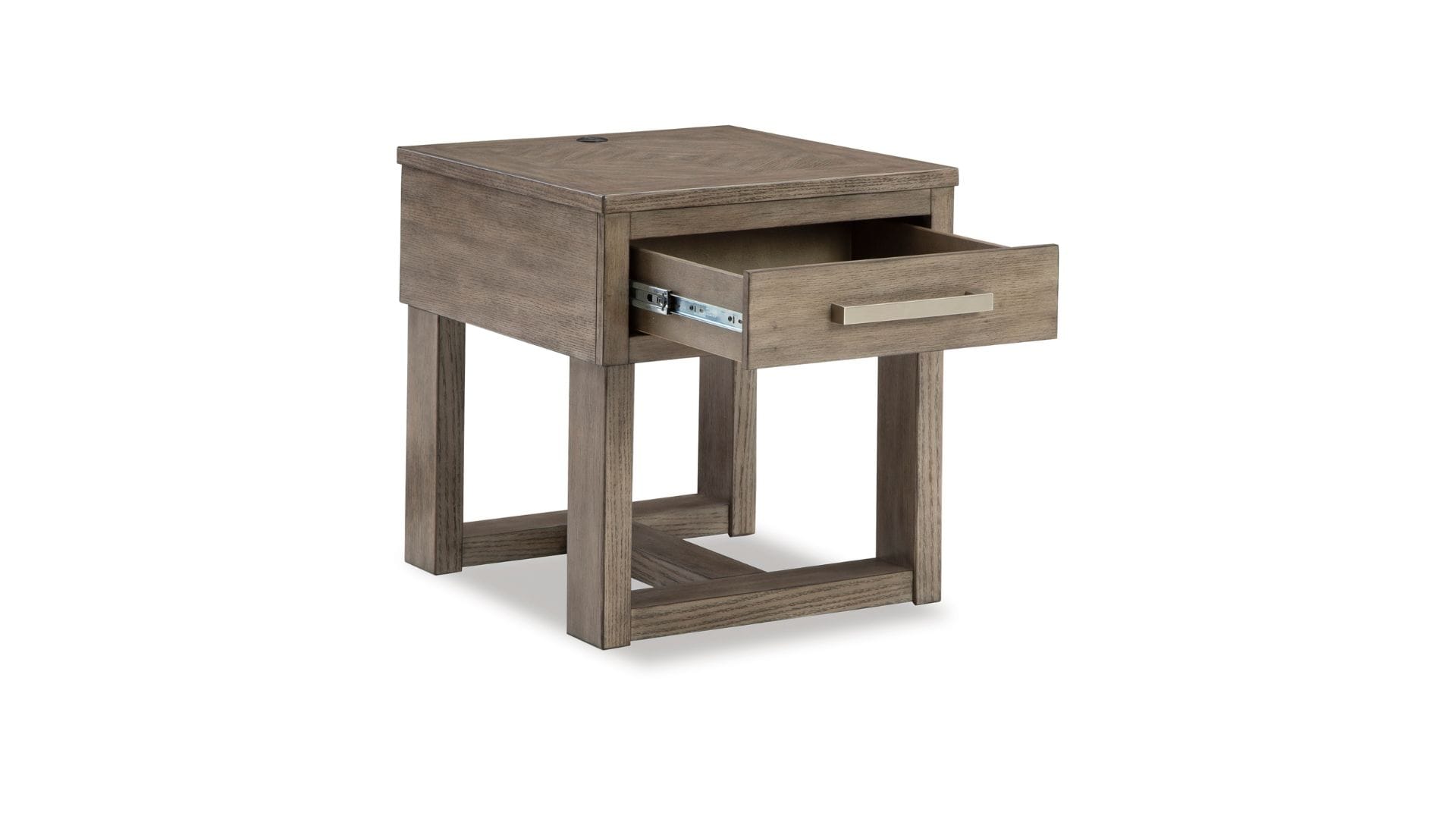 Welcome a sidekick full of casual, contemporary style and functionality to your home. The Loyaska end table is exceptionally handy for storing necessities next to your sofa or accent chair, and its USB charging makes powering your devices a breeze. Finished in a grayish brown wood tone, this piece lends a laid-back look that’s so welcome at the end of a long day.
