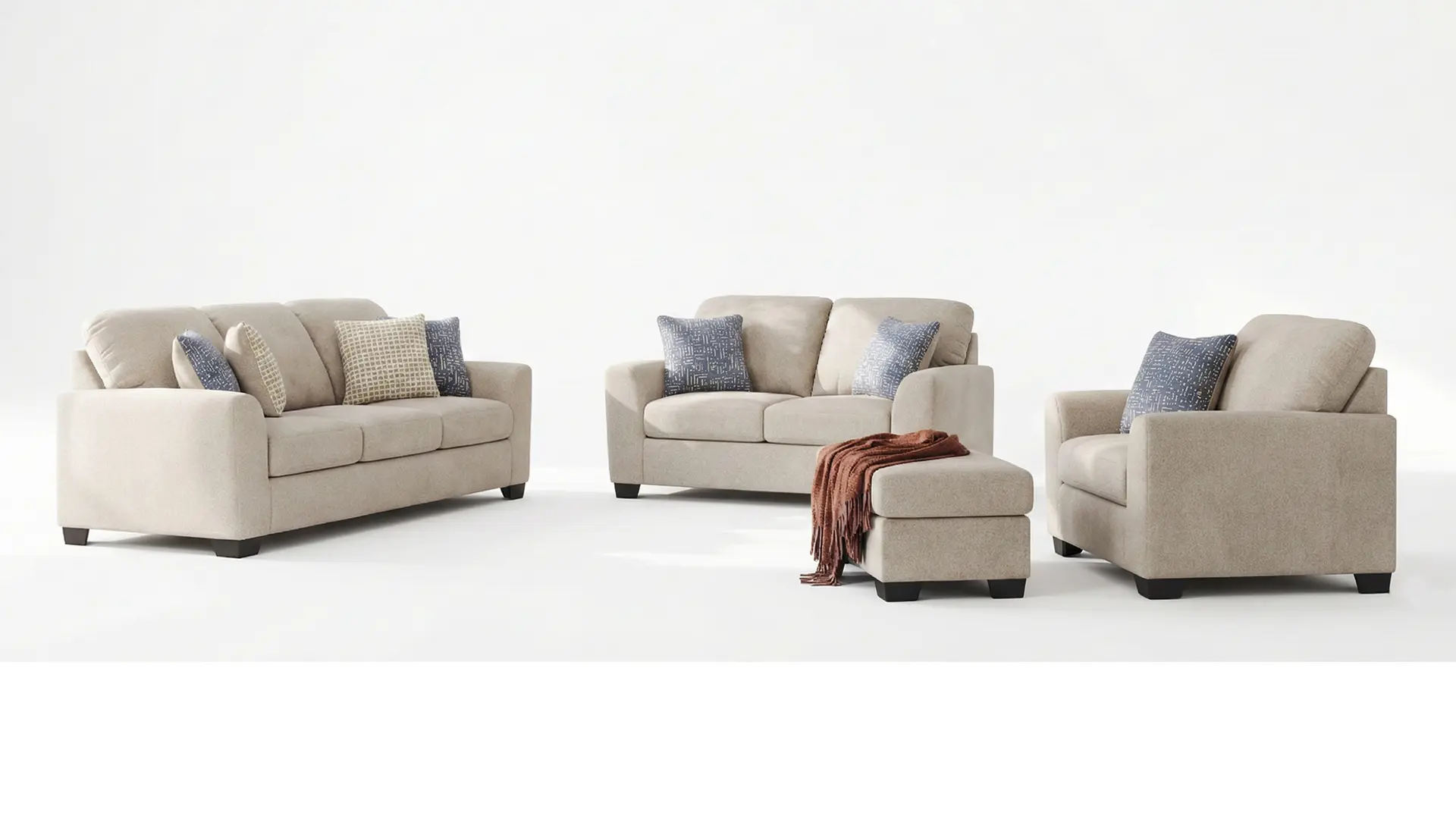 PANOLA TAUPE SOFA SET WITH OTTOMAN