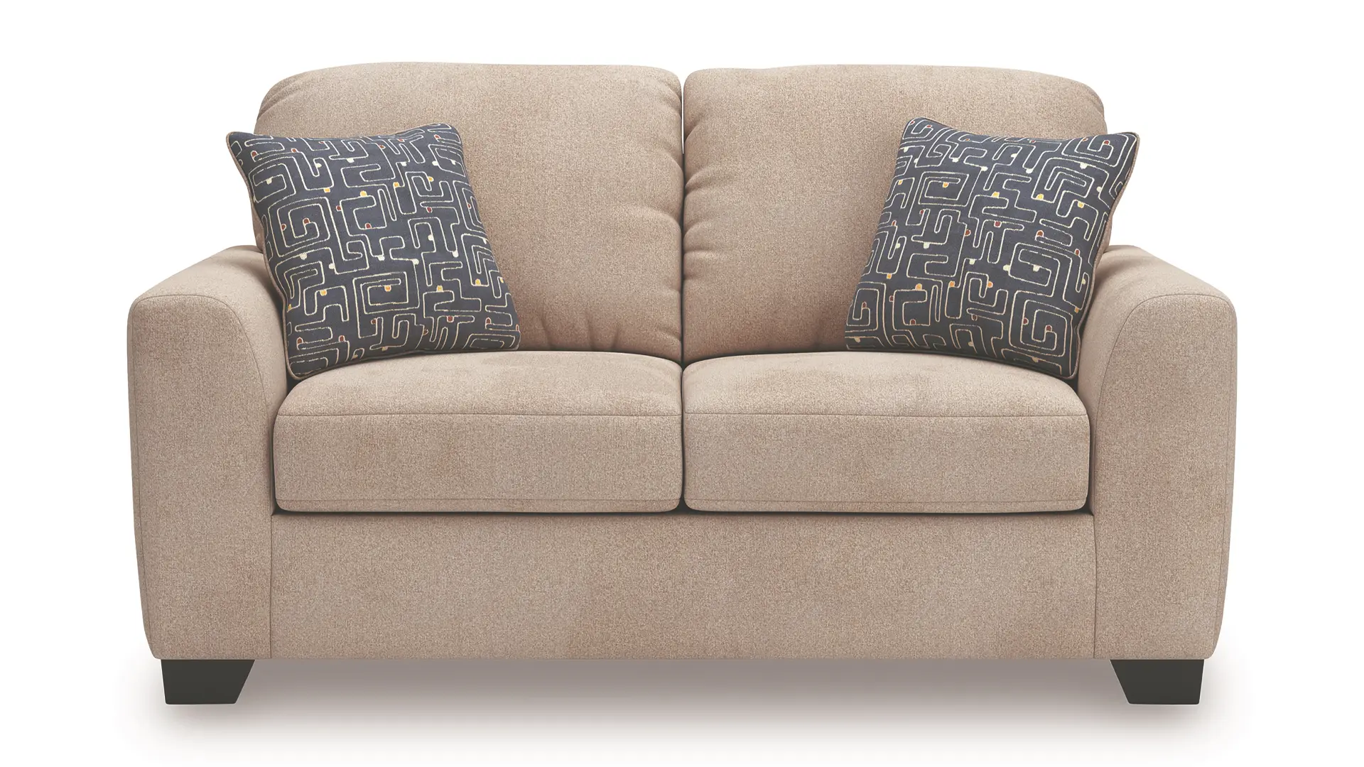 Loose, non-reversible seat cushions; attached back cushions