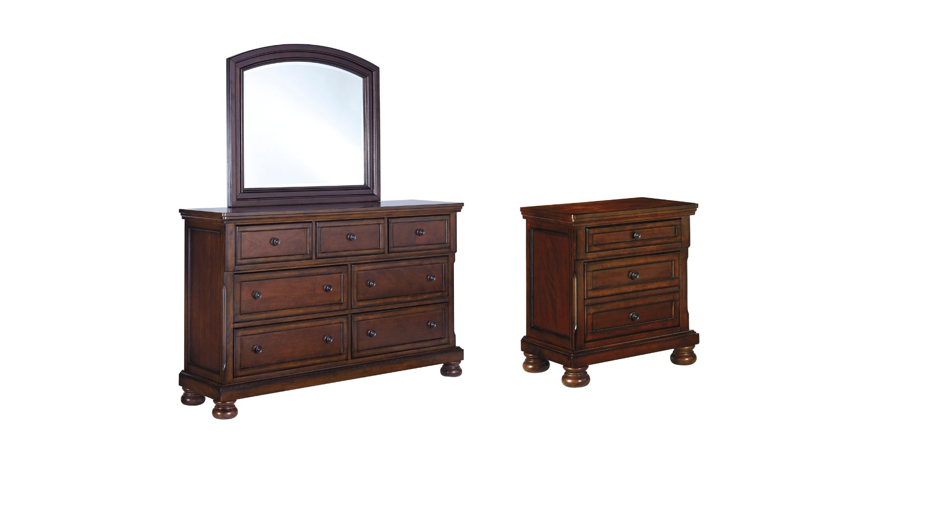 PORTER KING SLEIGH BEDROOM SET (BED + 2 NIGHTSTANDS + MIRRORED DRESSER)