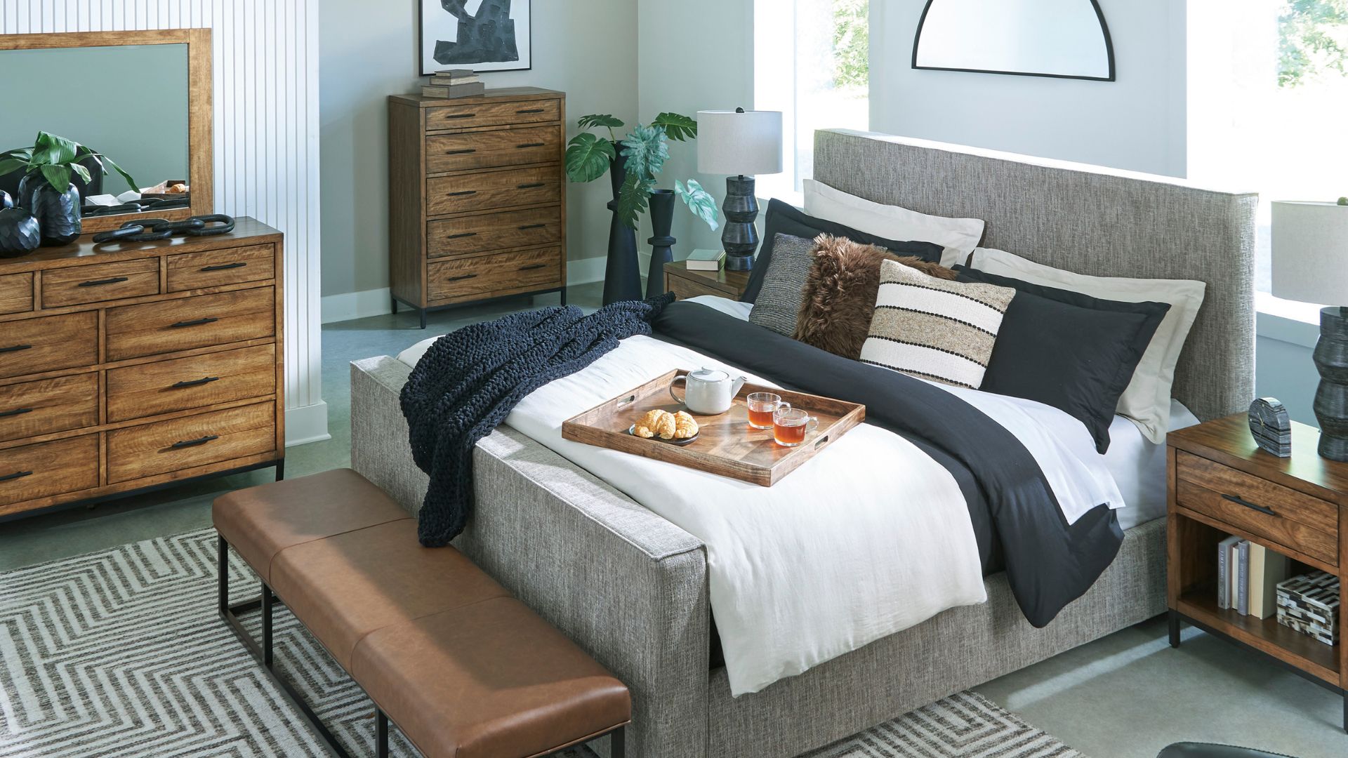 Cool, chic and crafted for the everyday, the Steenlage bedroom package is well-suited to your urban contemporary character. It pairs the natural beauty of wood with black metal for a luxe industrial feel. And with sturdy drawers, sleek bedroom storage is nearly effortless. How’s that for relaxed refinement?