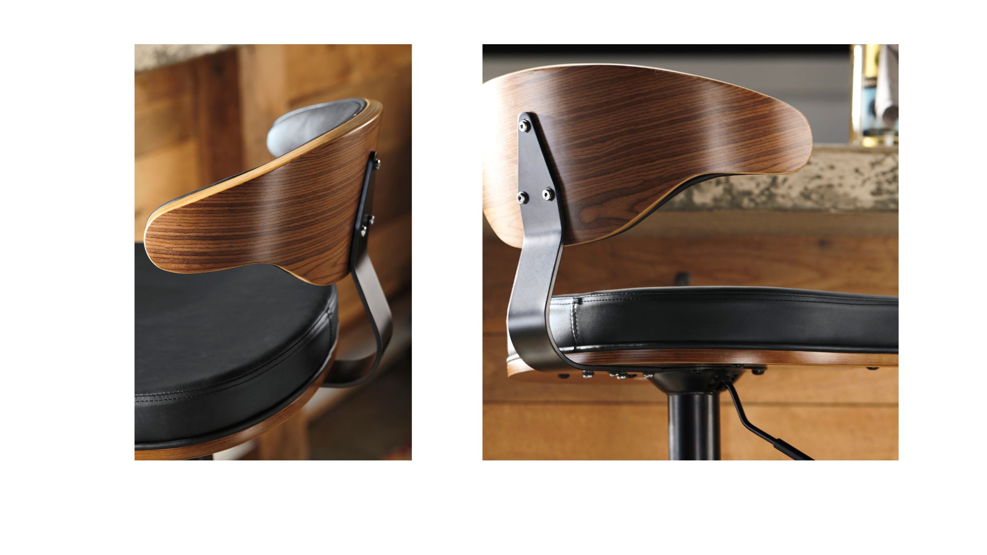 Style takes quite a modern turn. Sporting a distinctively contoured back, this upholstered swivel bar stool is sure to bring an elevated look to your living space.D120-330