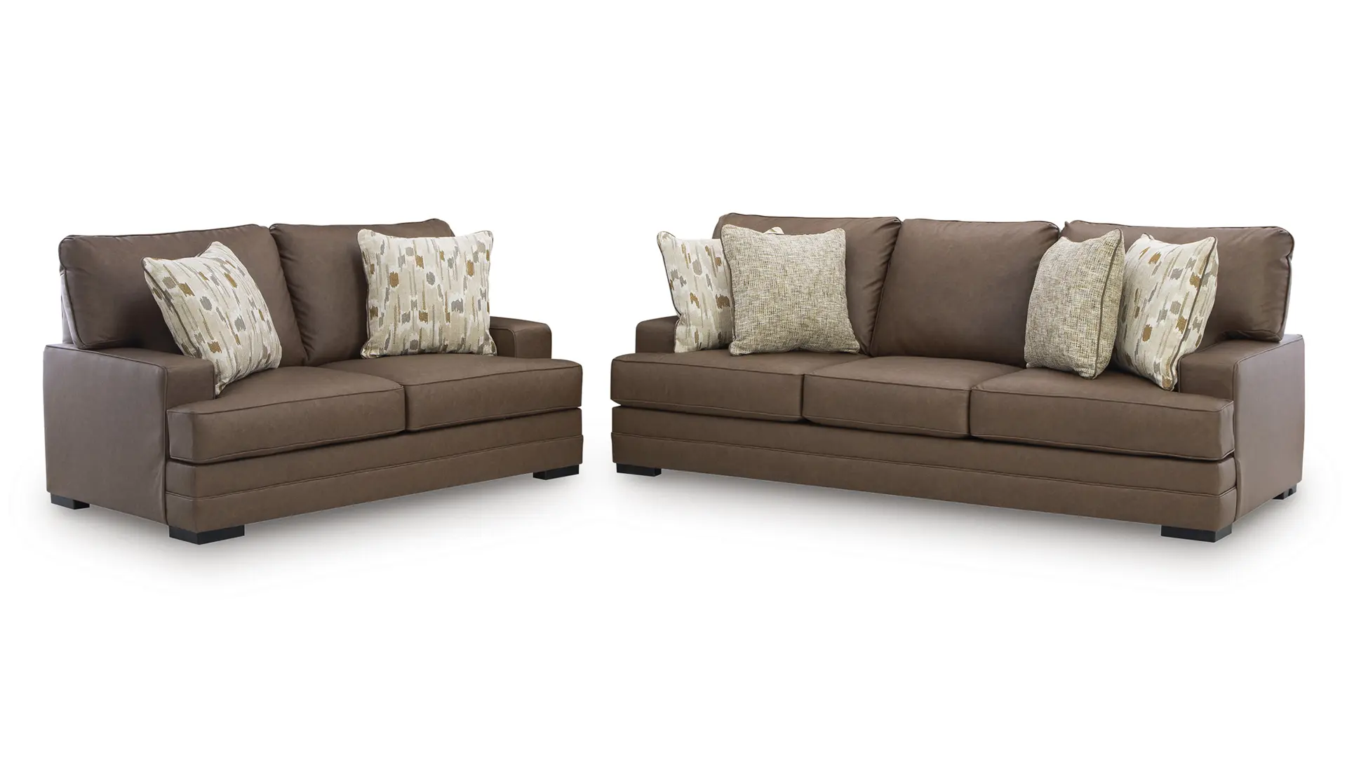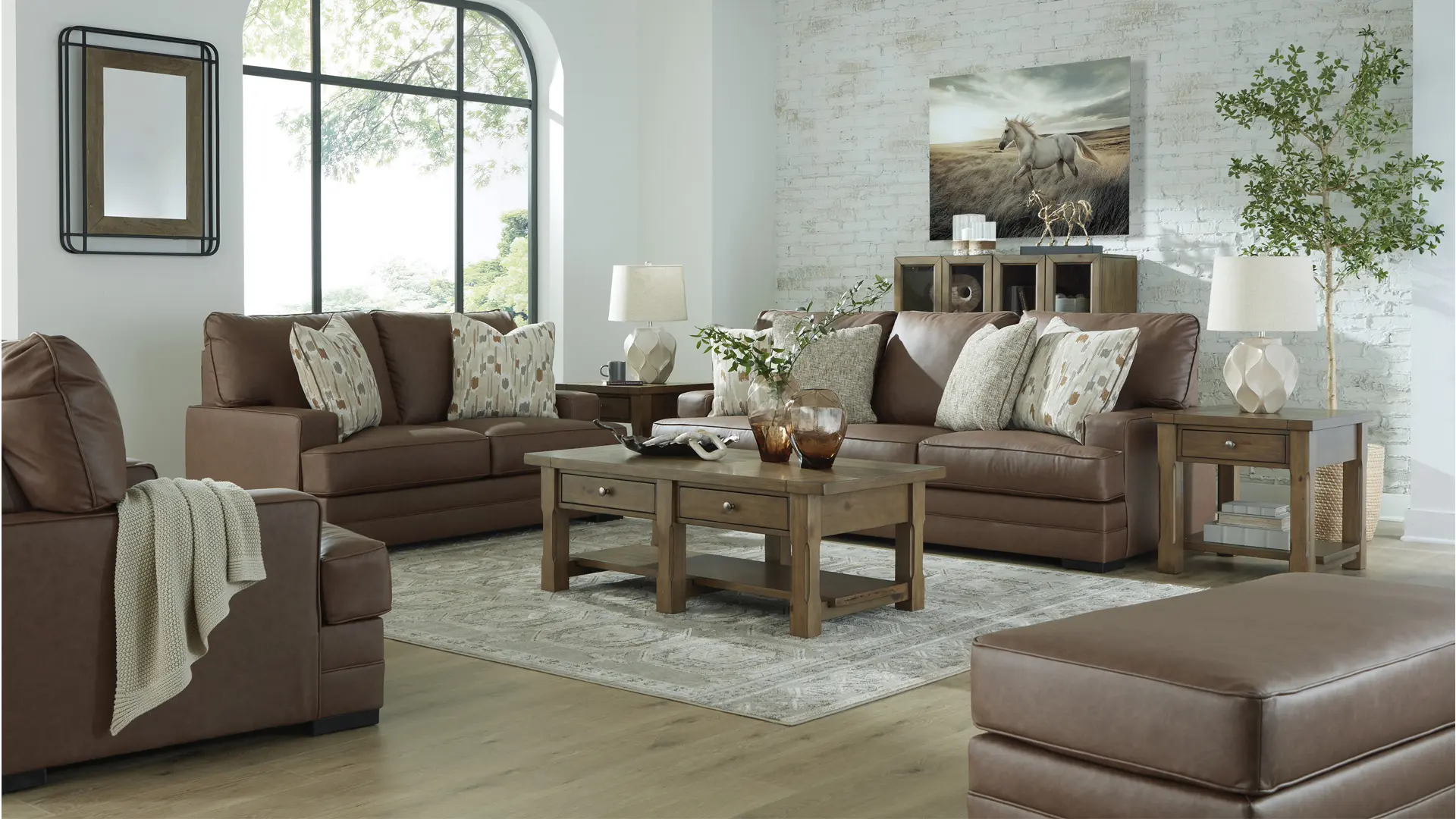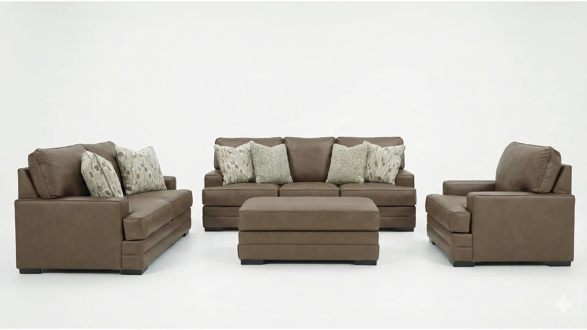 VILLACOURT CARAMEL SOFA SET WITH OTTOMAN